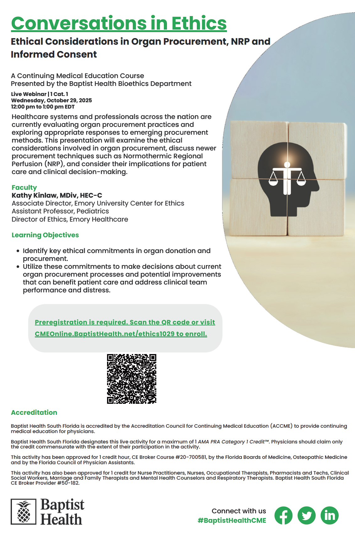 Conversations in Ethics: Ethical Considerations in Organ Procurement, NRP and Informed Consent